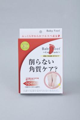 やすりや軽石でこするケアは、自分で行うと肌を傷つけることもあります。「ベビーフット イージーパックSP」は薬剤が染みこんだフットパックに足を浸して洗い流すだけで、使用後約1週間程度で、古く なった足裏の角質が自然に剥がれてきます。