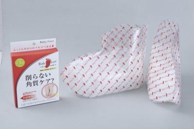削らない角質ケア「ベビーフット」は、「削る」ケアが一般的であったフットケア市場において、 「削らない」という新たなカテゴリを創出。2005年発売開始以来、現在までの累計販売個数は 43万個(国内販売個数約35万7千個、海外販売個数約7万9千個)に到達。2009年4~6月の累計販売実績では約11万個を記録し、前年同月実績約3万個を約4倍に更新するなど、多くの利用者の方に支持いただいております。