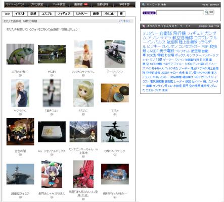 計8種類のジャンルに分かれ、画像を投稿する機能。