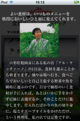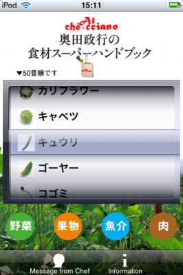名称:iPhone/iPod touchアプリ「奥田政行の食材スーパーハンドブック」