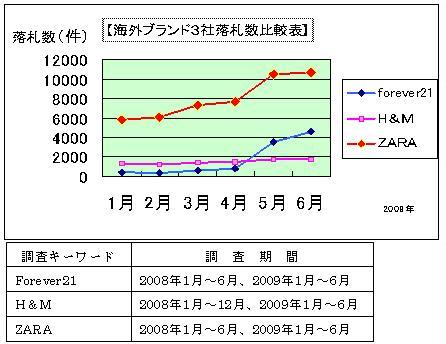 調査期間は「forever21」、「ZARA」は、2008年1月~6月、2009年1月~6月とし、