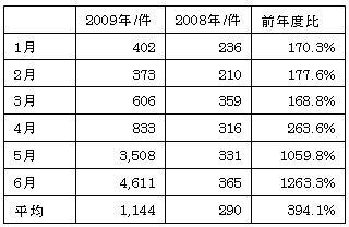 2009年の同市場合計では1月は「402件」、3月は「606件」、6月は、「4,611件」の