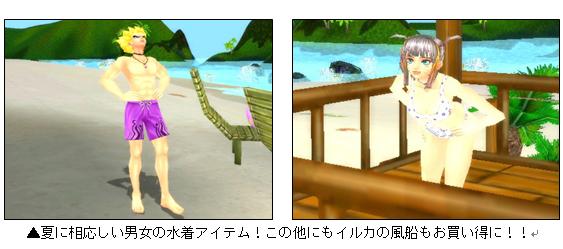 夏にぴったりのスキンアイテム「水着」を全て半額でお届けします。さらに水着に似合うイルカの風船も半額。