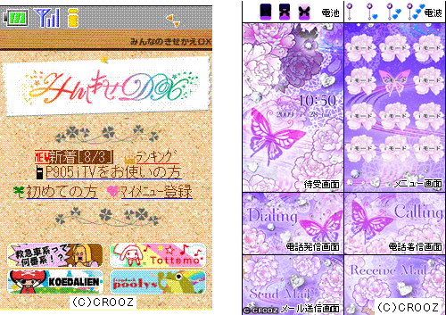 ※「きせかえ」とは、携帯電話の待受画面、メニュー画面、電話発着信画面、メール送受信画面、