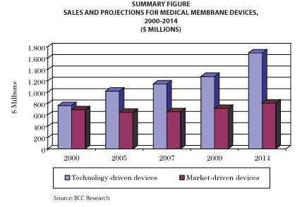 ウェルズリー、マサチューセッツ州:米国の調査会社BCC Researchが発行した技術市場調査報告書「MEDICAL MEMBRANE DEVICES: MARKET AND TECHNOLOGIES」によると、世界の医療用メンブレン装置市場は2009年に20億米ドルとなる予測です。また、今後5年間は年複利成長率(CAGR)の4.6%で成長し、2014年には25億米ドルに達する見込みです。