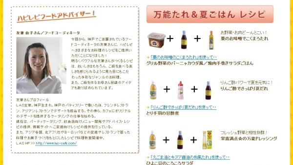 キャンペーン実施ページでは、フードコーディネータの友兼 由子さんがお勧めするレシピをご紹介しています。