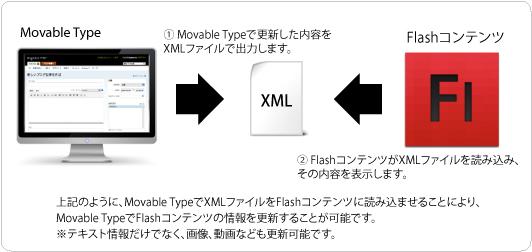 その為、XMLファイルを読み込むことが可能なFlashコンテンツの内容をMovable Typeで更新することが可能です。
