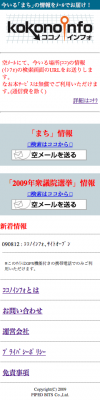 情報資産管理ASP/SaaS「スパイラル(R)」を提供する株式会社パイプドビッツ(本社:東京都港区 代表取締役社長:佐谷宣昭)(http://www.pi-pe.co.jp/)は、位置情報サービスを利用した新感覚ケータイまち情報検索サイト「ココノインフォ」に、第45回衆議院議員選挙の候補者情報を追加し、あなたが「今いる場所の衆院選候補者」情報を、その場で携帯メールで取得することができるサービスの提供を開始いたします。