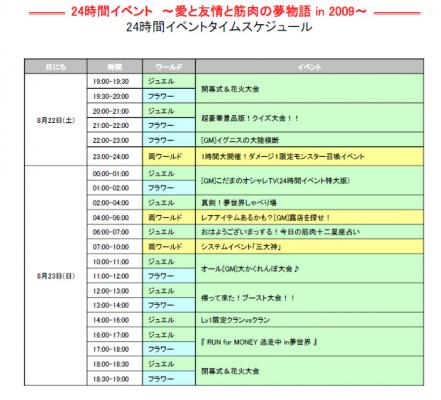 夢世界におきましては、明日(8月22日)より『24時間イベント ~愛と友情と筋肉の夢物語 in 2009~』を