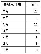 1月は「9件」、7月は「22件」、最近30日間は「279件」の落札数となっていました。