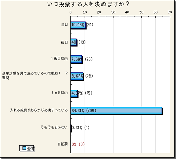 http://www.yoronchousa.net上で、実施されている調査『いつ投票する人を決めますか?』の