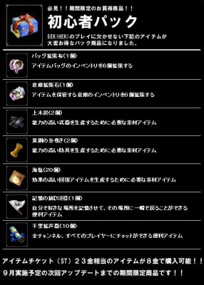 初心者パックの情報を含むSEKIHEKI9月のアップデート内容くわしくはこちら