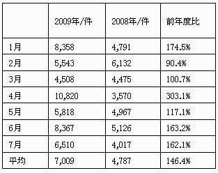 2009年の同市場合計では1月は「8,358件」、4月は、「10,820件」、7月は「6,510件」の落札数となり、