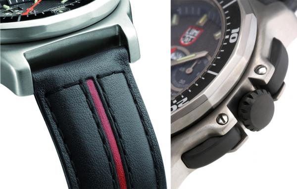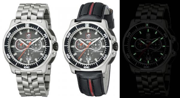 米国最新戦闘機「F-22ラプター」をモチーフに細部に渡り細かくデザインされたルミノックス最高峰のモデルです。機体のメイン素材と同じ素材を使用したチタニウムケース、コックピットに使用されているカーボンを文字盤に施し、更に全体の滑らかな曲線は機体全体のイメージを鮮明にデザインしています。特徴的なリューズはエンジンをそのままに、チタン素材で軽量かつ強靭な仕上がりとなっています。
