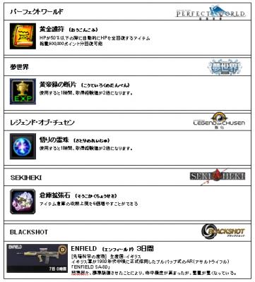 (パーフェクトワールド、夢世界、LEGEND of CHUSEN、SEKIHEKI、BLACKSHOT)