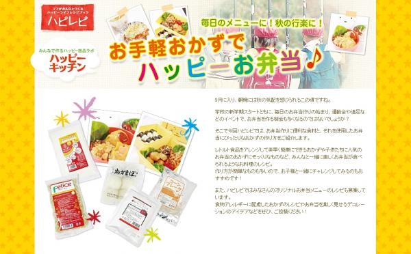 食物アレルギーのコミュニティサイト『ハピレピ』では、お弁当作りに便利な食材と、それを使用したお弁当にぴったりなおかずの作り方をご紹する「ハッピーお弁当キャンペーン」を開催しています。