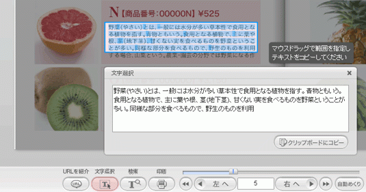FLIPPER3 では、デジタルブック内の任意の範囲を選択し、その中のテキスト文字を抽出することができます。