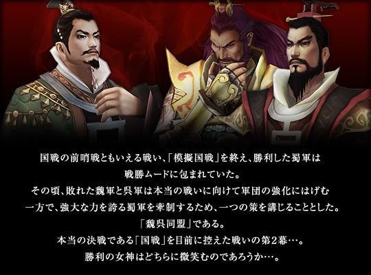 「蜀」対「魏呉連合軍」という 形で実施いたします。