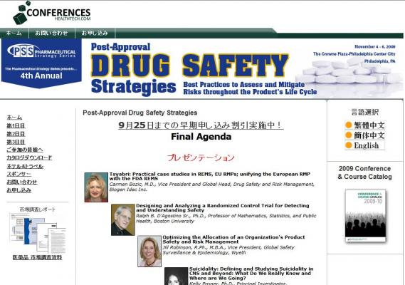 「Post-Approval Drug Safety Strategies」の情報を提供するとともに、会議の参加のお申し込みを承っております。