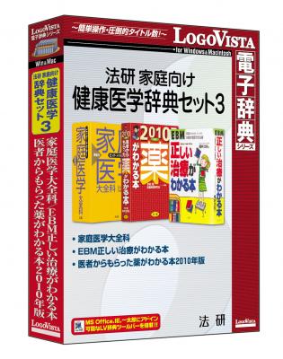 ロゴヴィスタ株式会社(東京都多摩市/代表取締役:レフォアンディ)は、パソコン用電子辞典において累計出荷80万本を超えるベストセラー「LogoVista電子辞典シリーズ」の新作として、Windows、Macintosh両OSに対応した『法研 家庭向け健康医学辞典セット3』を2009年10月23日(金)より、パソコンショップ、カメラ系量販店、大手書店、ダウンロード販売サイトなどで発売いたします。