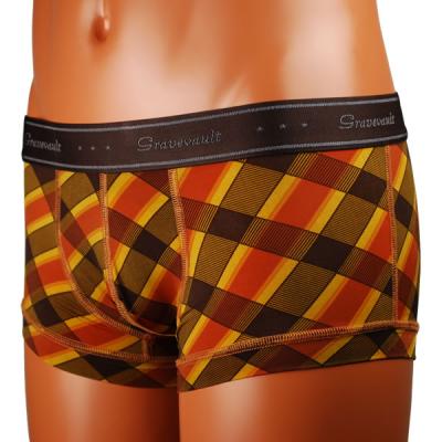上質な大人のためのアンダーウェアを展開するGravevault/グレイブボールト。今回は発色の素敵な秋色ボクサーパンツです。斜め×斜めのチェック柄ですが、アンダーウェアでは非常に珍しいデザインです。チェック柄は可愛くなりがちですが、このデザインから大人の渋さを感じるのはアンダーコネクションのスタッフだけではないと思います。30代~40代の素敵な男性へのプレゼントにお薦めの逸品です。