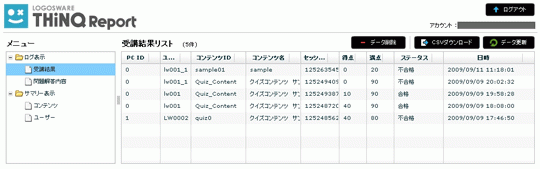 THiNQ Report は、各学習者の学習履歴を蓄積し、管理者に学習履歴データを提供するためのサーバー・システムです。