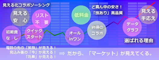 いわば、インバウンドとアウトバウンドが一体化したサービスであり、外勤中心の営業活動をベースキャンプであるコール(コンタクト)センターとのモバイル連携で支える戦略的営業支援の総合サービスとなっております。