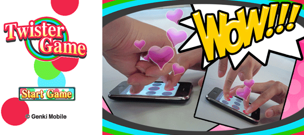 「ツイスターゲーム」は、画面上の指定されたマスに指を置いていくゲームです。2人ペアで遊ぶことで、指が触れるかもしれないというドキドキ感を味わえます。飲み会などでパーティゲームとしてお楽しみください。