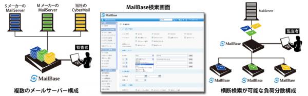 メール監査・メールアーカイブシステムの最新バージョン「MailBase Ver.3.0」では、メールの検索画面を改善し、より使い勝手の良い監査システムへと向上しました。各種メーカーのメールサーバが混在し,且つ認証方法がそれぞれ異なる環境でも最新版の「MailBase」ならワンシステムで扱える様になります。またメールの流通数が膨大な大規模環境にも対応できる負荷分散構成に対応し、複数台のメールアーカイブサーバーの横断検索が可能となり高率的なメール監査を実現します。