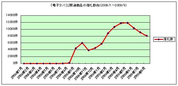 ■ 電子タバコ」関連商品の落札動向(2008/1~2009/8)