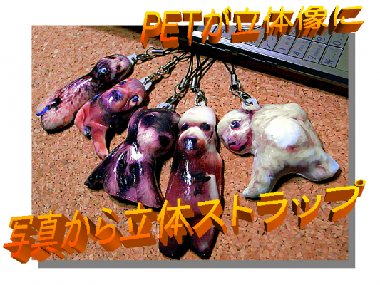 写真を添付して申し込むと、超リアル全身立体ペットストラップが届きます。
