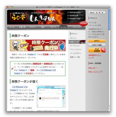 ジンギスカン専門店オンラインショップ、らむ亭@web(有限会社らむ亭 | 本社:北海道帯広市 | 代表取締役社長:鈴村忍)は、 Twitter(ツイッター)を利用して有効時間に制限がある時限クーポンの発行を開始しました。