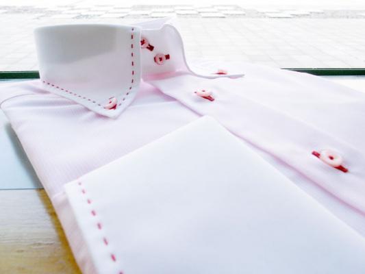 ハンドステッチ(2625円)やクレストボタン(1260円)、ダブルカフス(525円)などのオプションをいつものオーダーシャツに加えることで、ワングレードもツーグレードも上のシャツに変貌します。