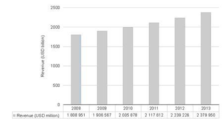 図 1: 世界の通信収益, 2008-2013 [ソース: Analysys Mason, 2009]