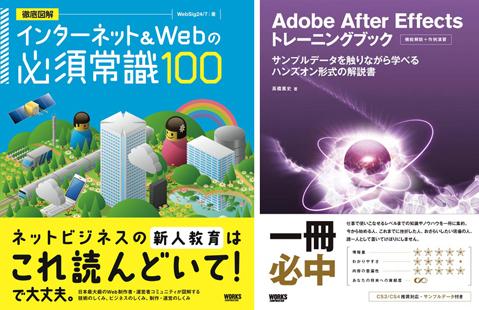 月刊誌CGWORLD等、デジタルコンテンツの教育書籍及び雑誌の出版販売を行っている株式会社ワークスコーポレーション(本社:東京都渋谷区、代表取締役社長:篠原 淳 以下:ワークスコーポレーション)は、クリエイターを育てることを目的とした書籍『インターネット&Webの必須常識100』、『Adobe After Effects トレーニングブック』、2タイトルを、10月20日(火)に同時発売いたします。