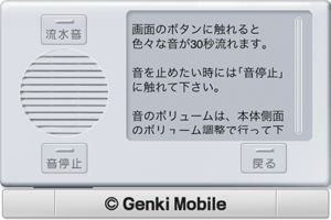 音の種類は全部で9つ収録しており、普通の流水音の他にも、セクシーな効果音や勇壮な軍艦マーチにカウントダウンなど、気分に合わせて使い分けられ、周囲の人を驚かせたりして、笑いを誘うこと間違いなしです。