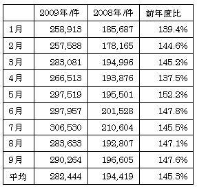 2009年の同市場合計では1月は「258,913件」、4月は、「266,513件」、