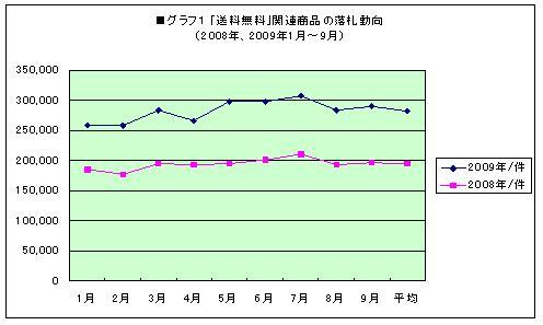 ■ 「送料無料」関連商品の落札動向(2008、2009年各1~9月)