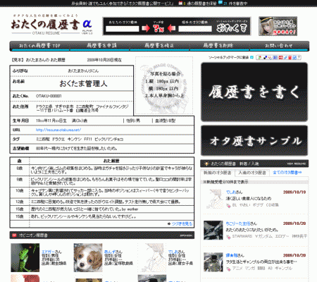 ・内容:自身のオタク経歴を専用履歴書に登録し一般公開してしまうという、ジョーク要素も過分に含まれたサービスです。
