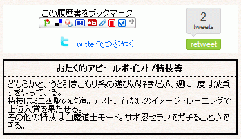 公開された履歴書には、ソーシャルブックマークボタンによるクリップ、ツイッターによるつぶやきや評価など、