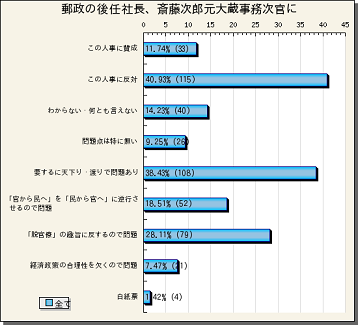 『郵政の後任社長、斎藤次郎元大蔵事務次官に』の途中結果をお知らせします。