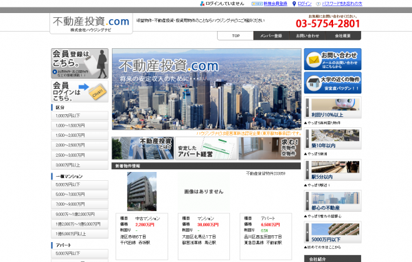 この度の『株式会社ハウジングナビ』様のWEBサイト『不動産投資.com』(http://www.housingnavi-toshi.net/)は、不動産投資情報サイトとなっております。自社ホームページ構築支援ASP「不動産検索Lab」を利用し、ポータルサイト「いえらぶ」と連動する形で、サイトを構築しております。