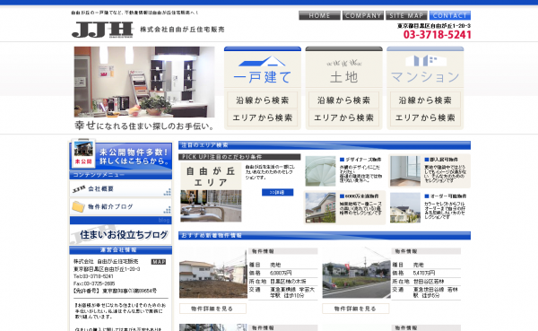 この度の『株式会社自由が丘住宅販売』(http://www.jjh.co.jp/)様のWEBサイトは、自由が丘の一戸建てに特に注力した不動産情報サイトとなっております。自社ホームページ構築支援ASP「不動産検索Lab」を利用し、ポータルサイト「いえらぶ」と連動する形で、サイトを構築しております。