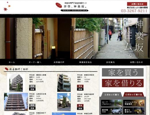この度の『拝啓、神楽坂』(http://www.joycosmo.com/)は、神楽坂の不動産(http://www.joycosmo.com/buy/)・賃貸(http://www.joycosmo.com/rent/)の情報サイトとなっております。自社ホームページ構築支援ASP「不動産検索Lab」を利用し、ポータルサイト「いえらぶ」と連動する形で、サイトを構築しております。