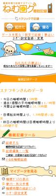携帯TOPページで「起きた」「寝た」ボタンをクリックすると、記録される