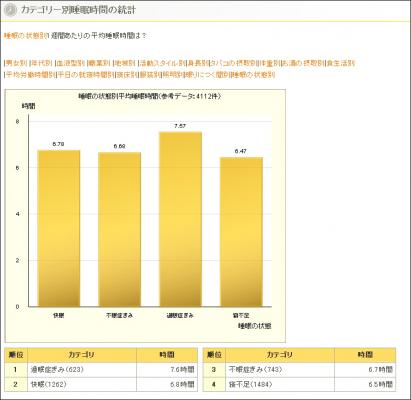 6.5時間はたくさん眠っていると感じますが、平日は平均4時間、休日に10時間眠るという方もいらっしゃるため、1週間の平均を見るとこのような数値になると考えられます。