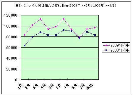 ■ 「ハンドメイド」関連商品の落札動向(2008年1~9月、2009年1~9月)