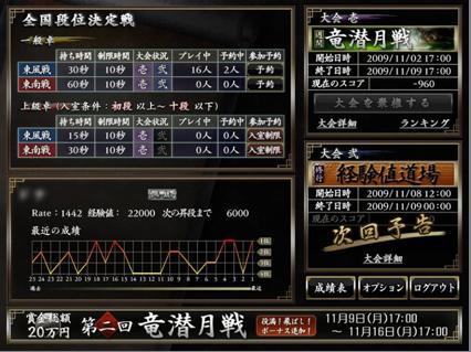 役満和了・飛ばし・飛びボーナス有り。大会開催期間中の合計大会スコアを競い合います。