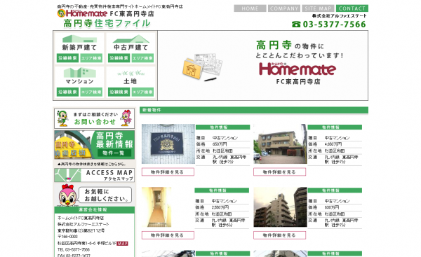 この度の『株式会社自由が丘住宅販売』(http://www.koenji-jutaku-file.com/)様のWEBサイトは、高円寺の不動産・売買物件専門サイトとなっております。自社ホームページ構築支援ASP「不動産検索Lab」を利用し、ポータルサイト「いえらぶ」と連動する形で、サイトを構築しております。