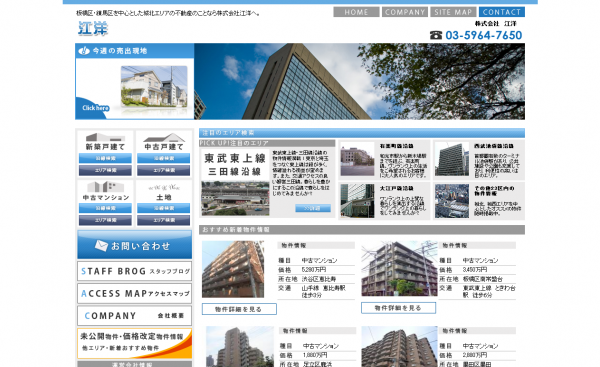この度の『株式会社 江洋』(http://www.kouyou-tokiwadai.co.jp/)様のWEBサイトは、板橋区・練馬区の不動産・売買物件専門サイトとなっております。自社ホームページ構築支援ASP「不動産検索Lab」を利用し、ポータルサイト「いえらぶ」と連動する形で、サイトを構築しております。